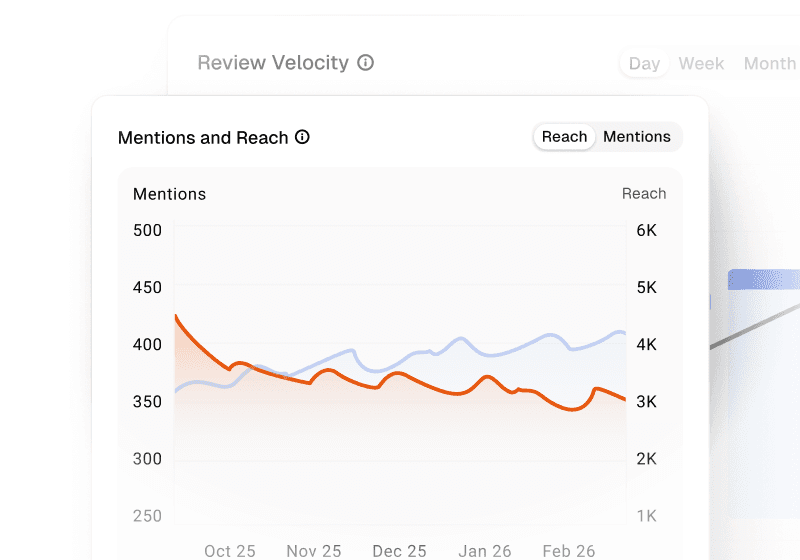 Get a clear snapshot of how reviews, mentions, and sentiment impact your brand.