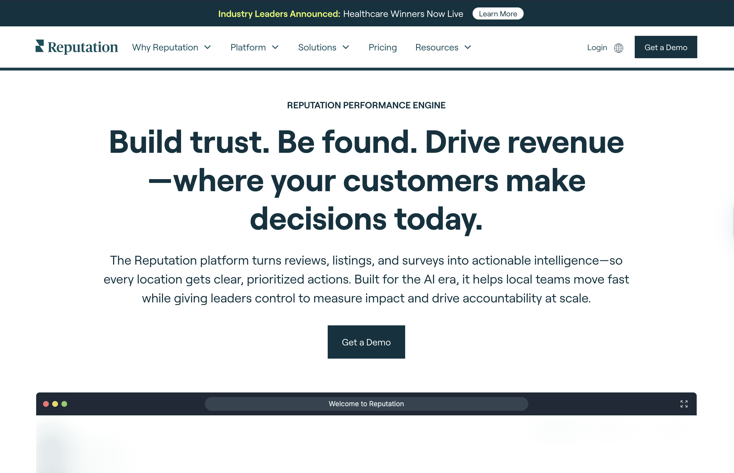 Reputation is an enterprise-level platform that focuses on managing the entire customer journey through reviews, listings, and social media. It features a proprietary "Reputation Score" that benchmarks an organization's digital performance against industry standards and competitors.