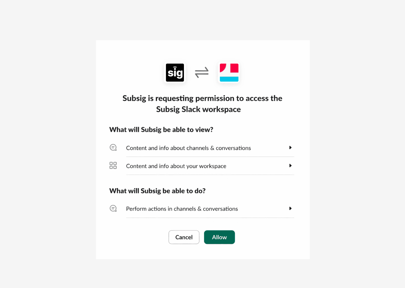 Select the Slack workspace you want to connect and click Allow to grant access.