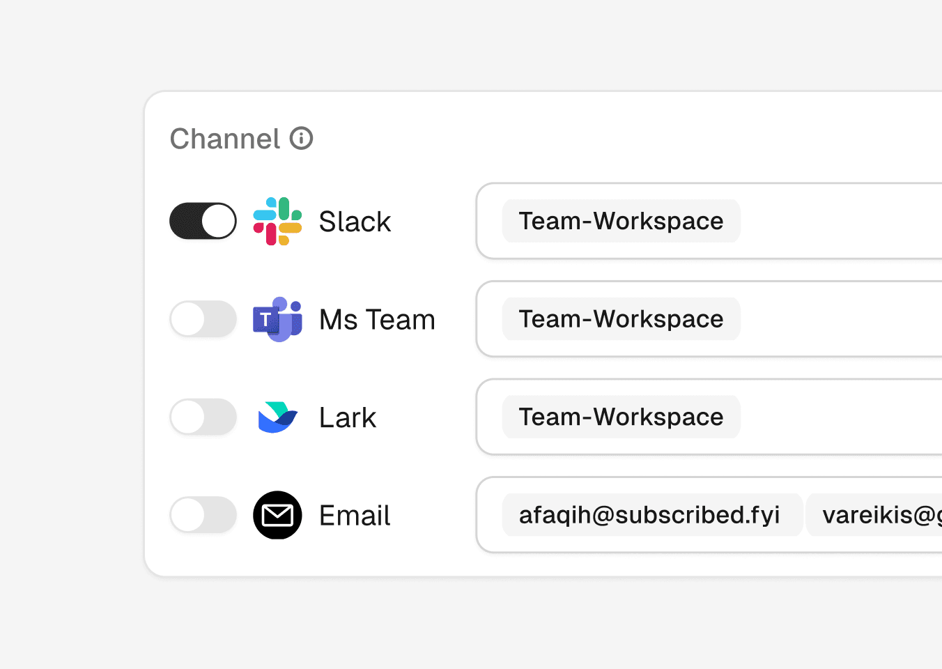 Choose the Slack channels for your Subsig notifications.