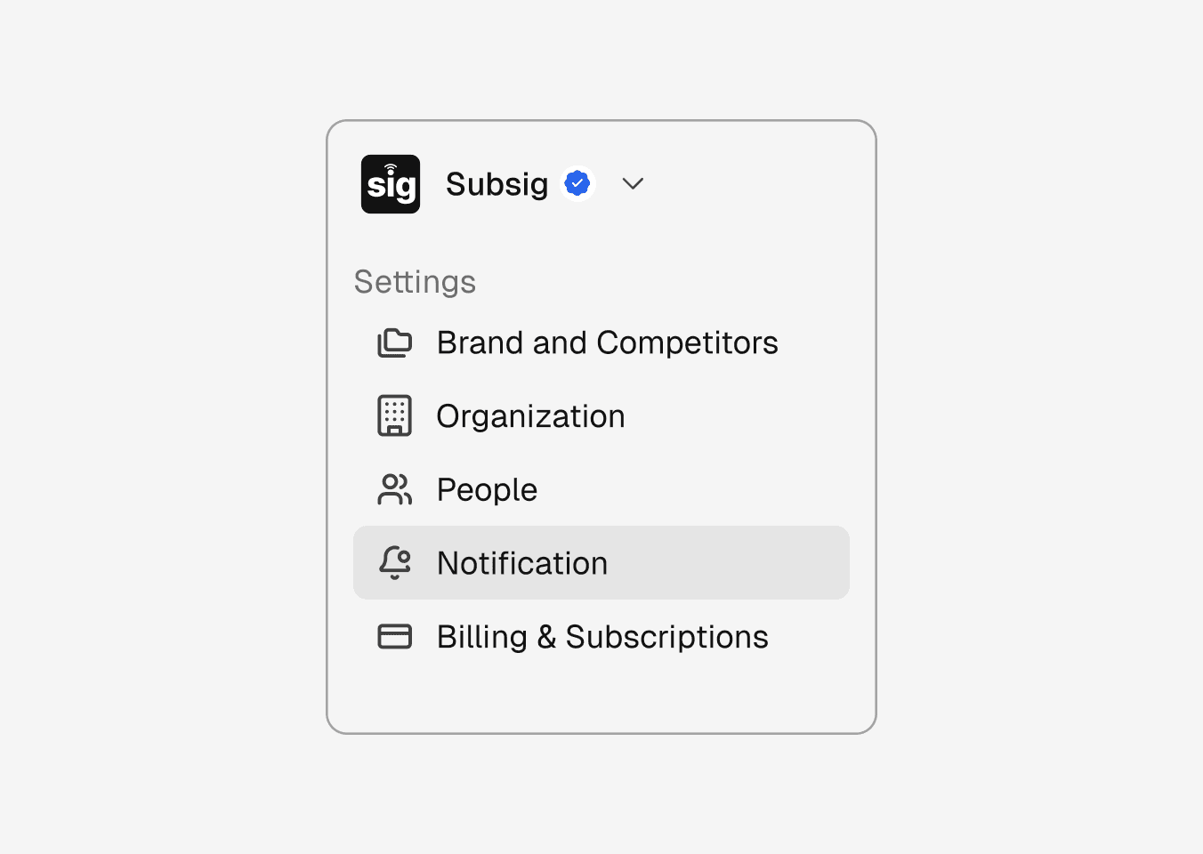 Sign in to your Subsig account (or start a free trial). From the sidebar, go to Notifications.