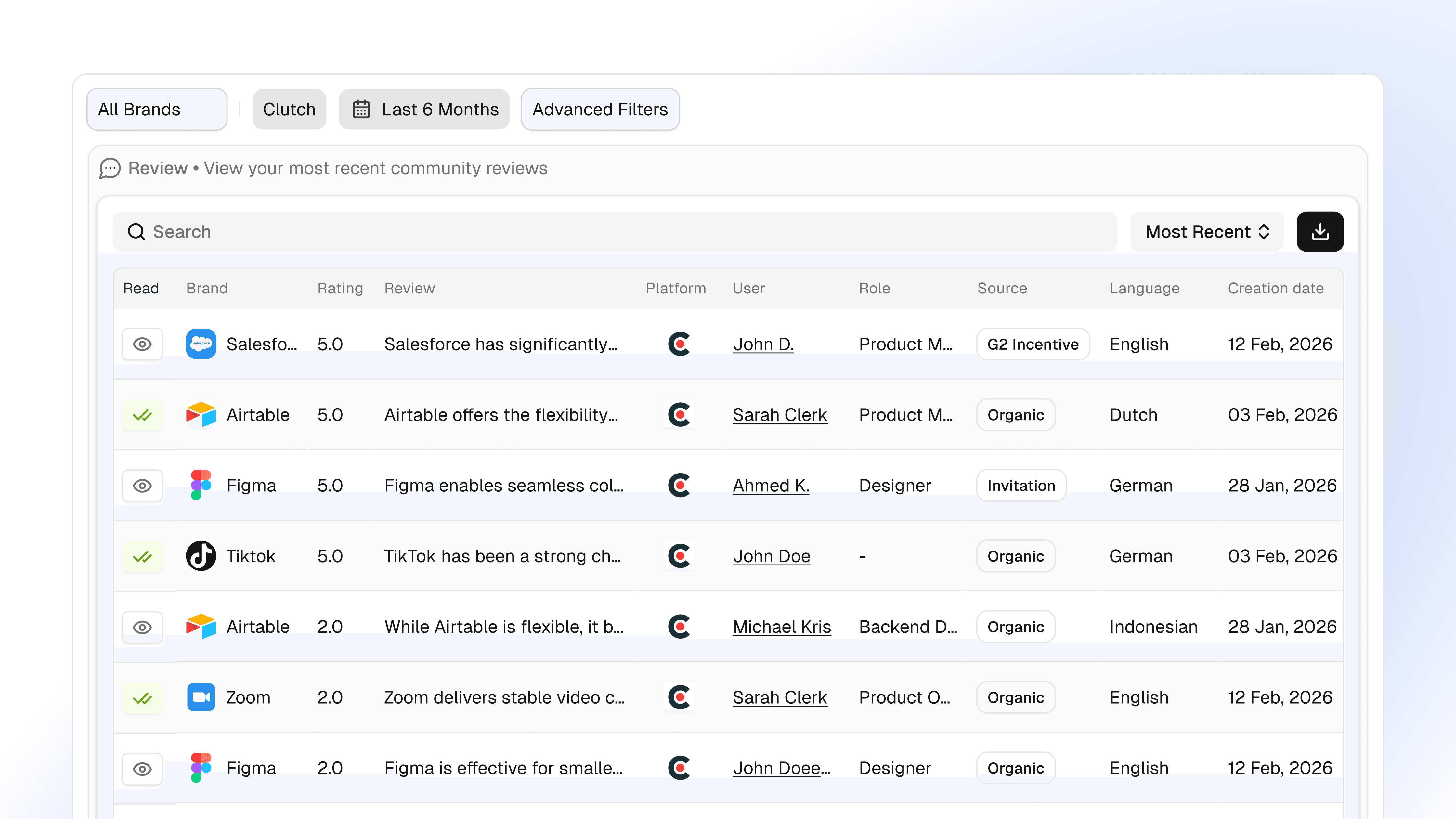 User reviews can significantly influence a company’s reputation. Platforms like Clutch provide verified client reviews and ratings that directly affect purchasing decisions. Companies that leverage tools like Subsig can monitor Clutch reviews, sentiment, badges, and rankings in real time. This enables businesses to act quickly, maintain trust, and influence potential buyers before deals are finalized.
